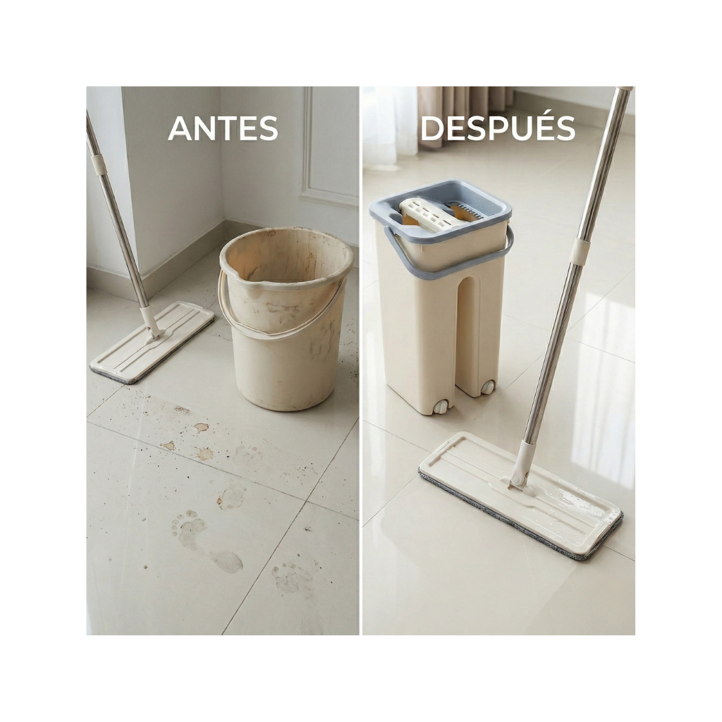 - Mopa de microfibra absorbente – Atrapa polvo, pelos y suciedad sin dejar marcas.